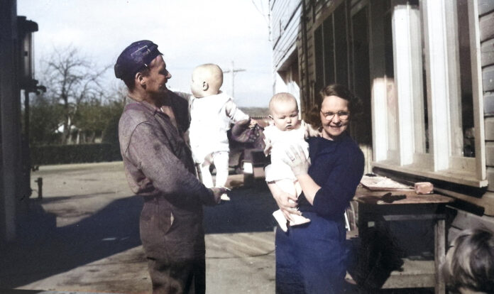 A lot happened in the ensuing six years.  Bob Chambers purchased his father’s gas station where the Enumclaw-Black Diamond Road intersects S.E. 416th Street.  He was nearly blinded when a battery blew up in his face, but a poultice of tobacco juice and castor oil healed the wound. While digging a well, he fell on a wooden plank that impaled his lower body, after which a doctor told him he would never have children.  So in early 1949, it was something of a miracle that Bob and Betty Jean (Hubbell) Saari were standing outside their Chambers Corner filling station holding identical twin boys, Robert and Richard.  Over the next five years, Bob and Betty Chambers bore three more children, Marilyn, Eloise, and Bruce.