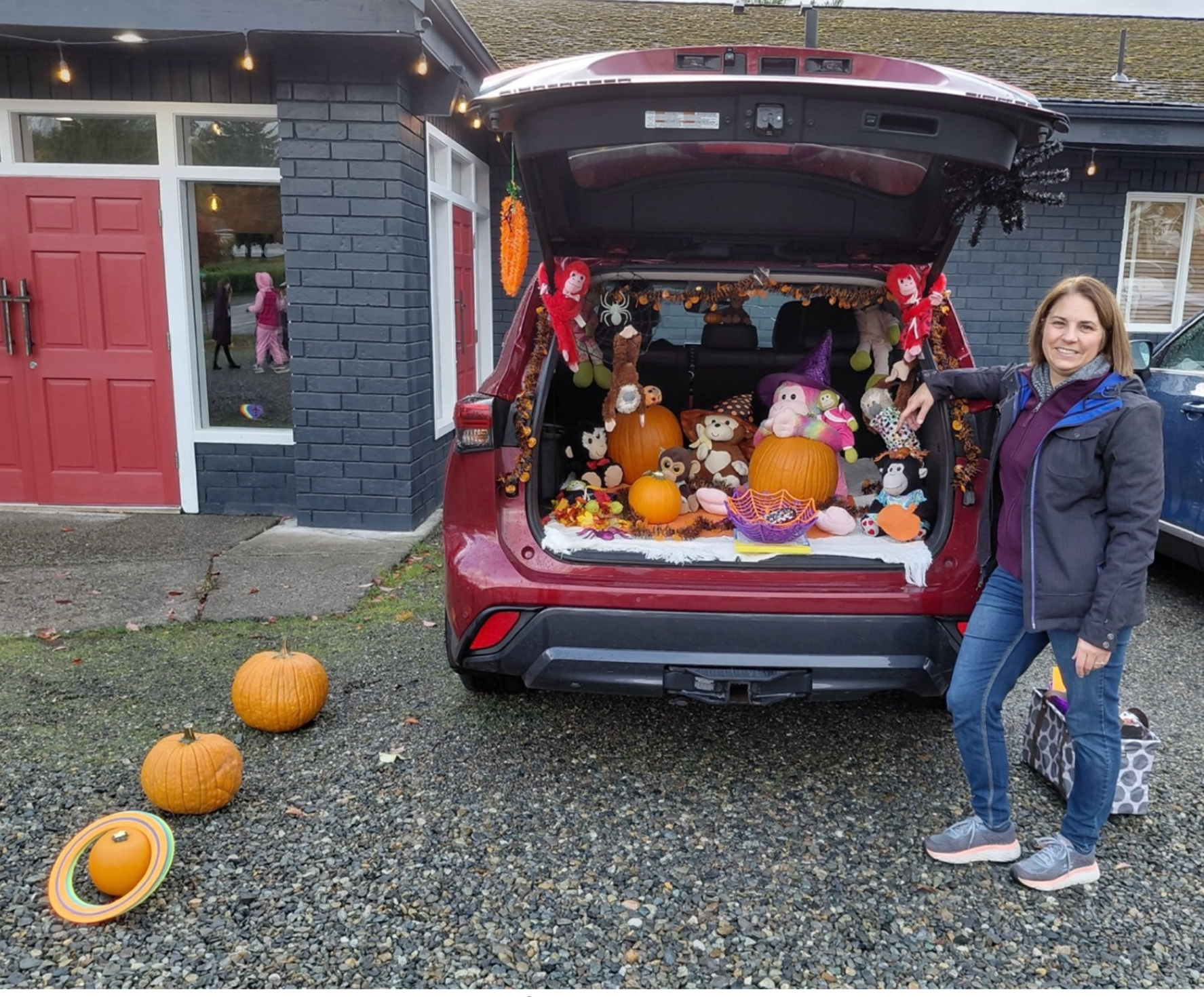 Monkeys, pumpkins and more filled Laura Arnold’s trunk as she prepared to offer holiday treats at Trunk or Treat. Laura’s pumpkin ring toss game was a big hit. Co-sponsored by Shepherd of the Valley Church and St. George Episcopal Church, 20 decorated vehicles gathered for holiday fun. After one hour of filling children’s treat baskets, Mother Nature’s blast of rain and hail called a halt to the successful event.