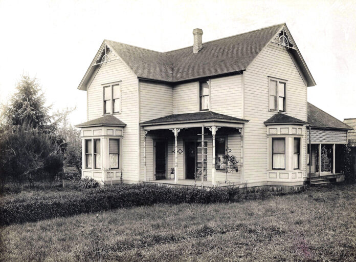 With a growing family, Joshua erected this impressive home on 40 acres he acquired for $125. It was likely constructed in the mid to late 1890s, though the Assessor records claim 1900. It was built in a Folk Victorian style with Queen Anne influences. The 2,960-square-foot home still stands at 44427 – 208th Ave. S.E. and looks remarkably the same as this photo, likely taken in the 1920s.